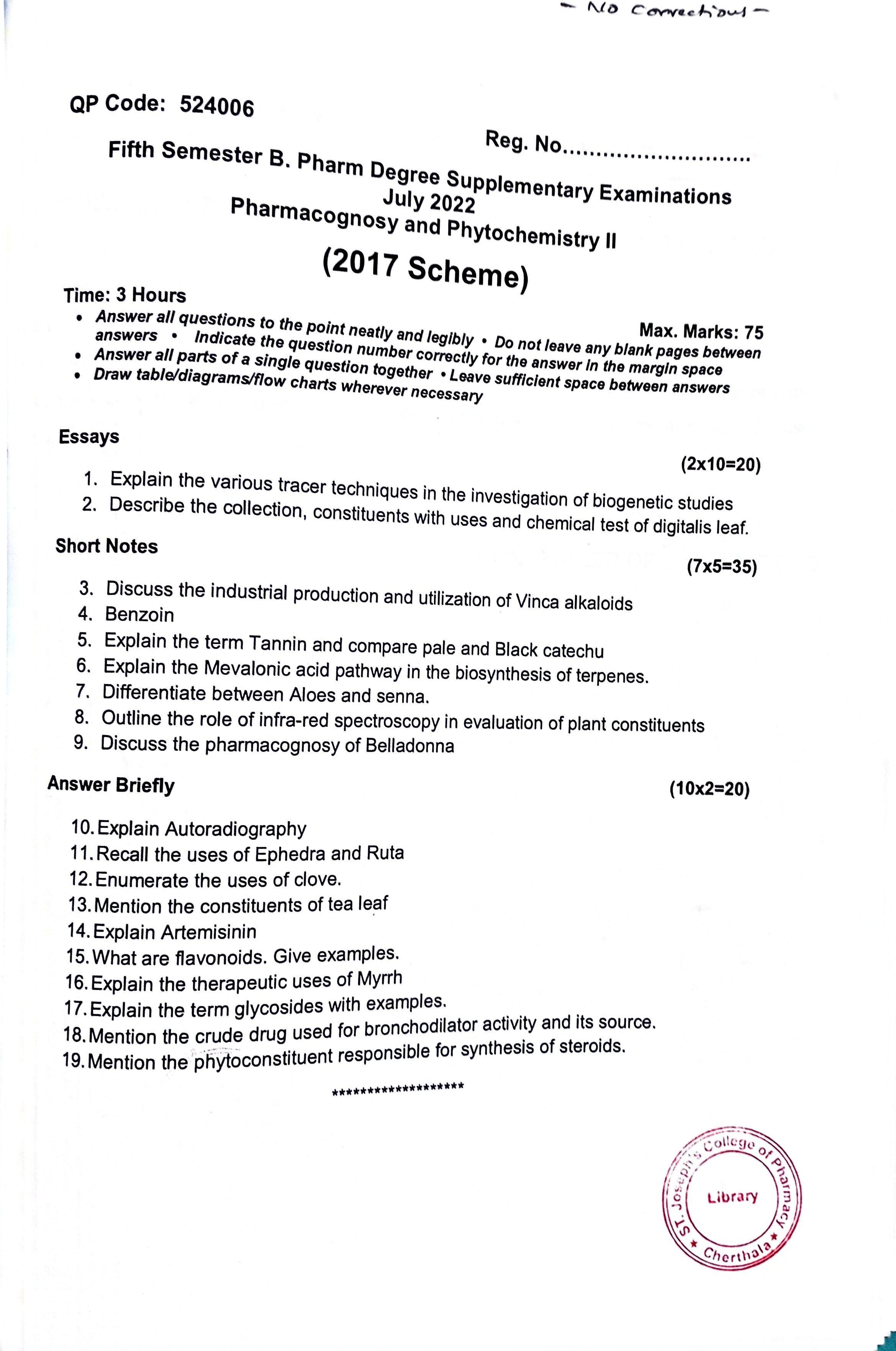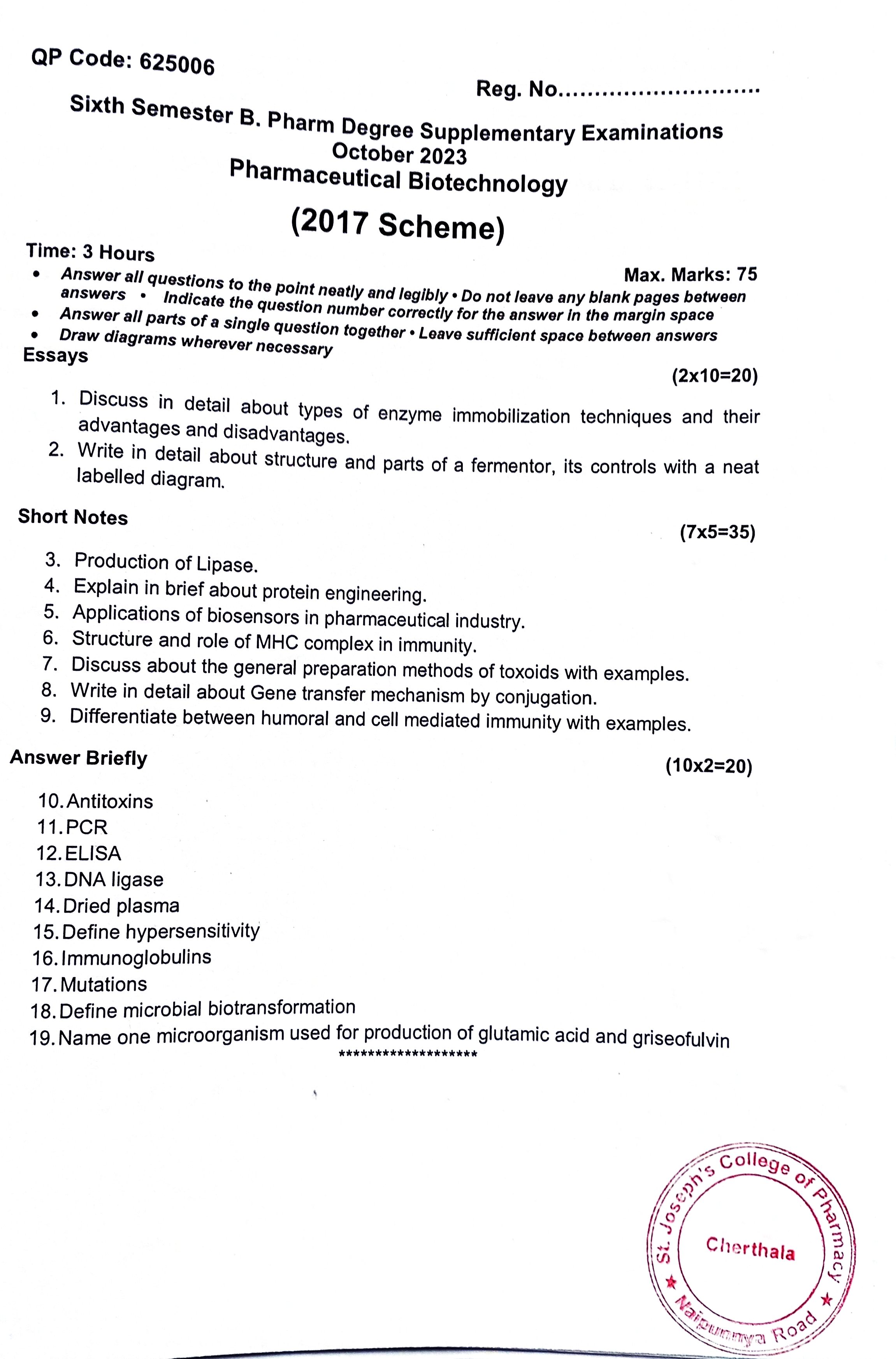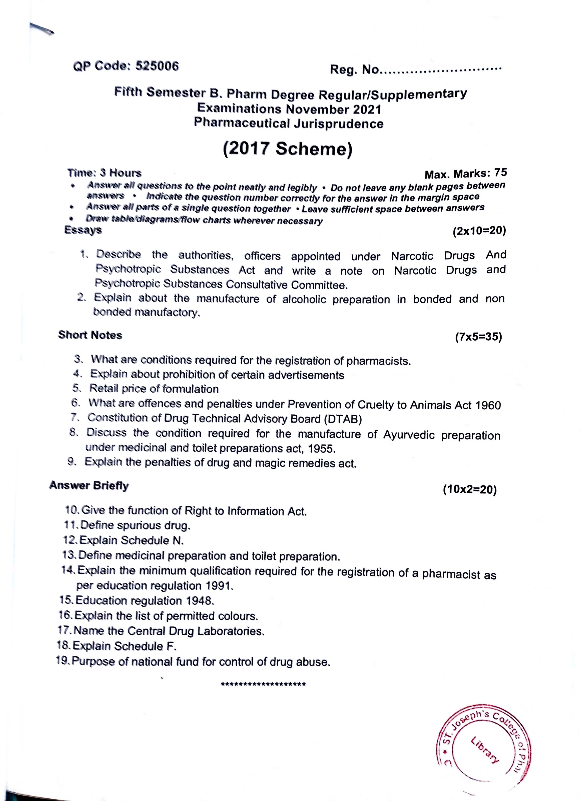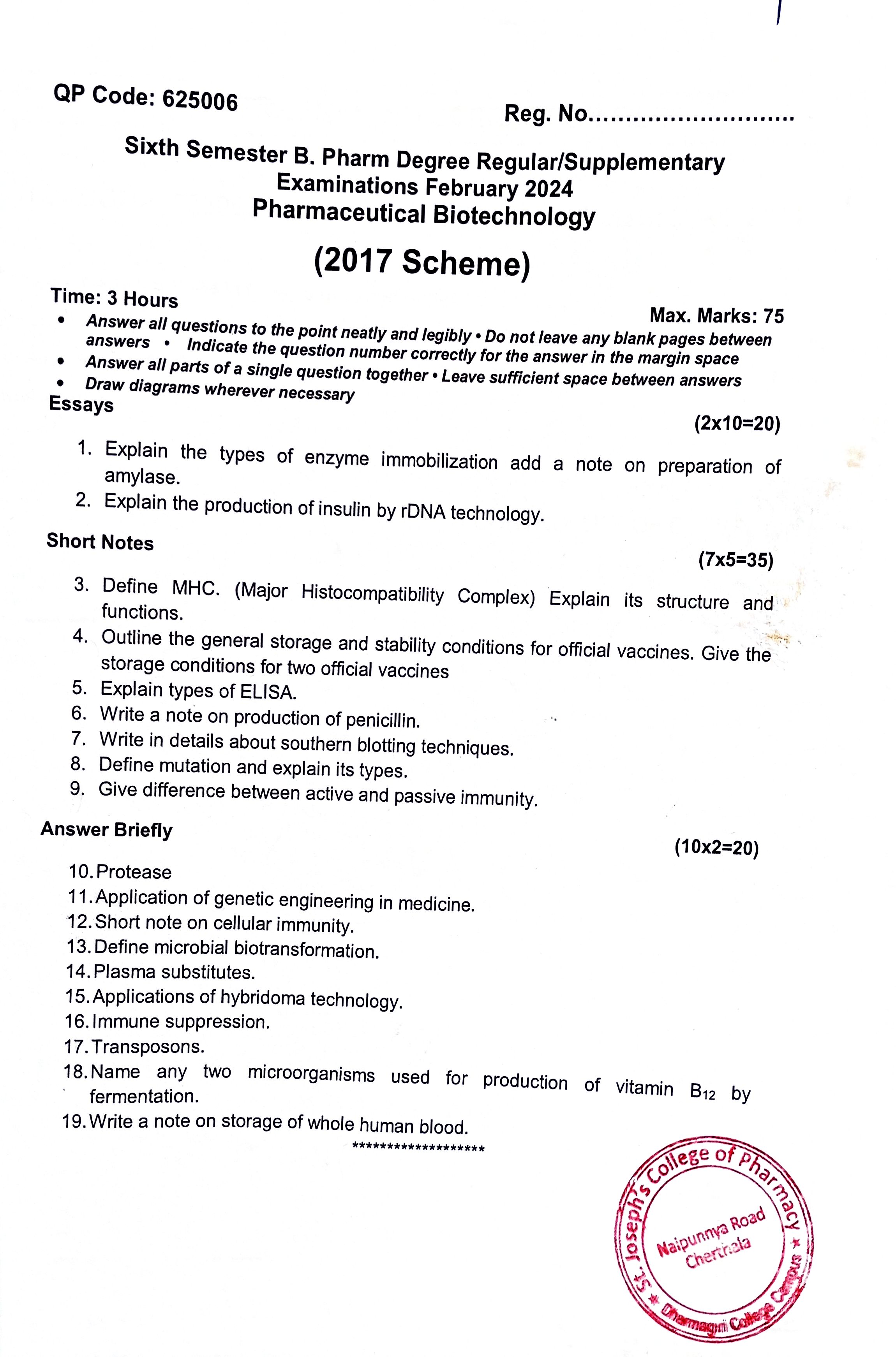 https://sjpc.digitalrepository.in/xmlui/handle/123456789/14| Title: | Bpharm 5 & 6 question papers |