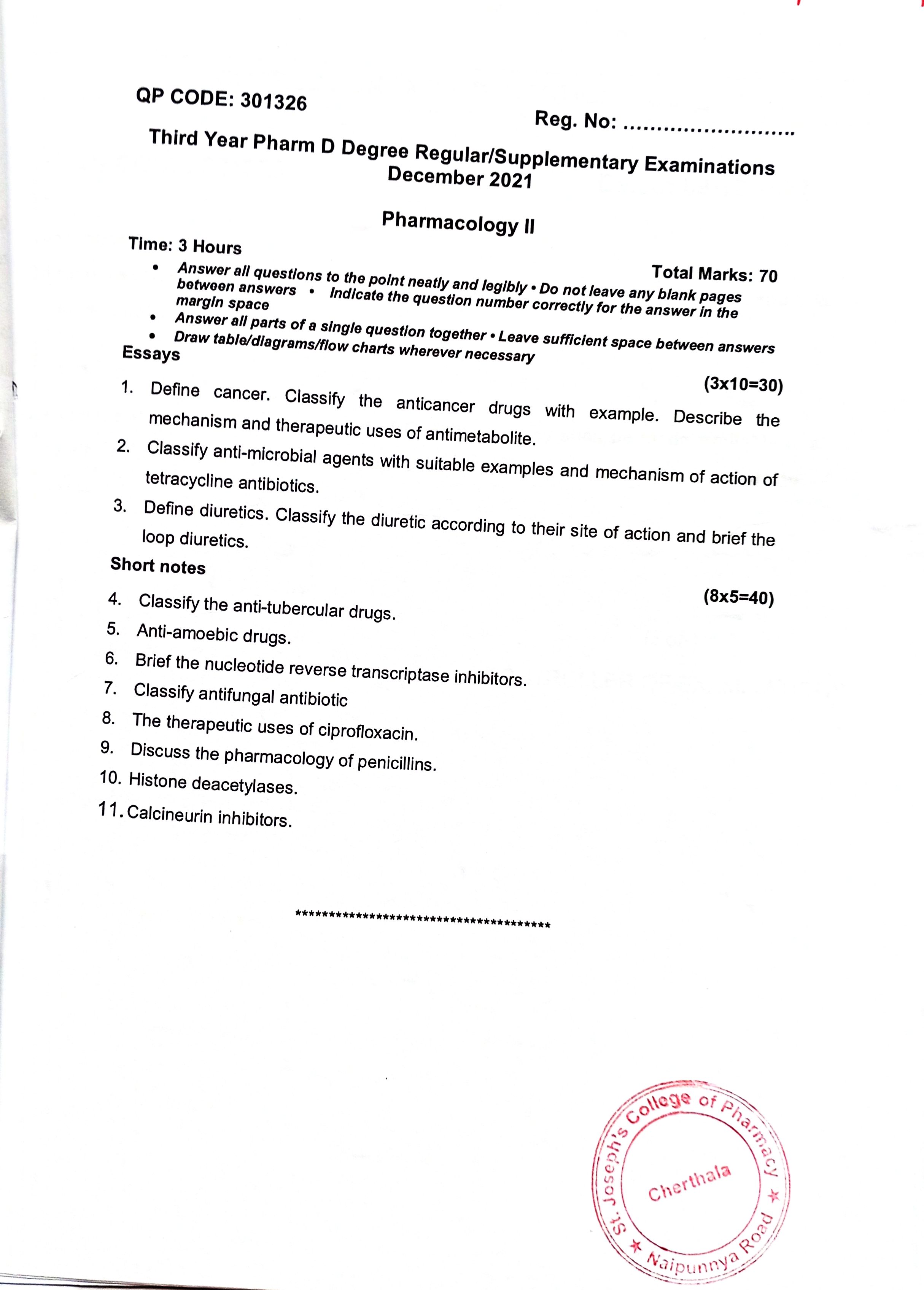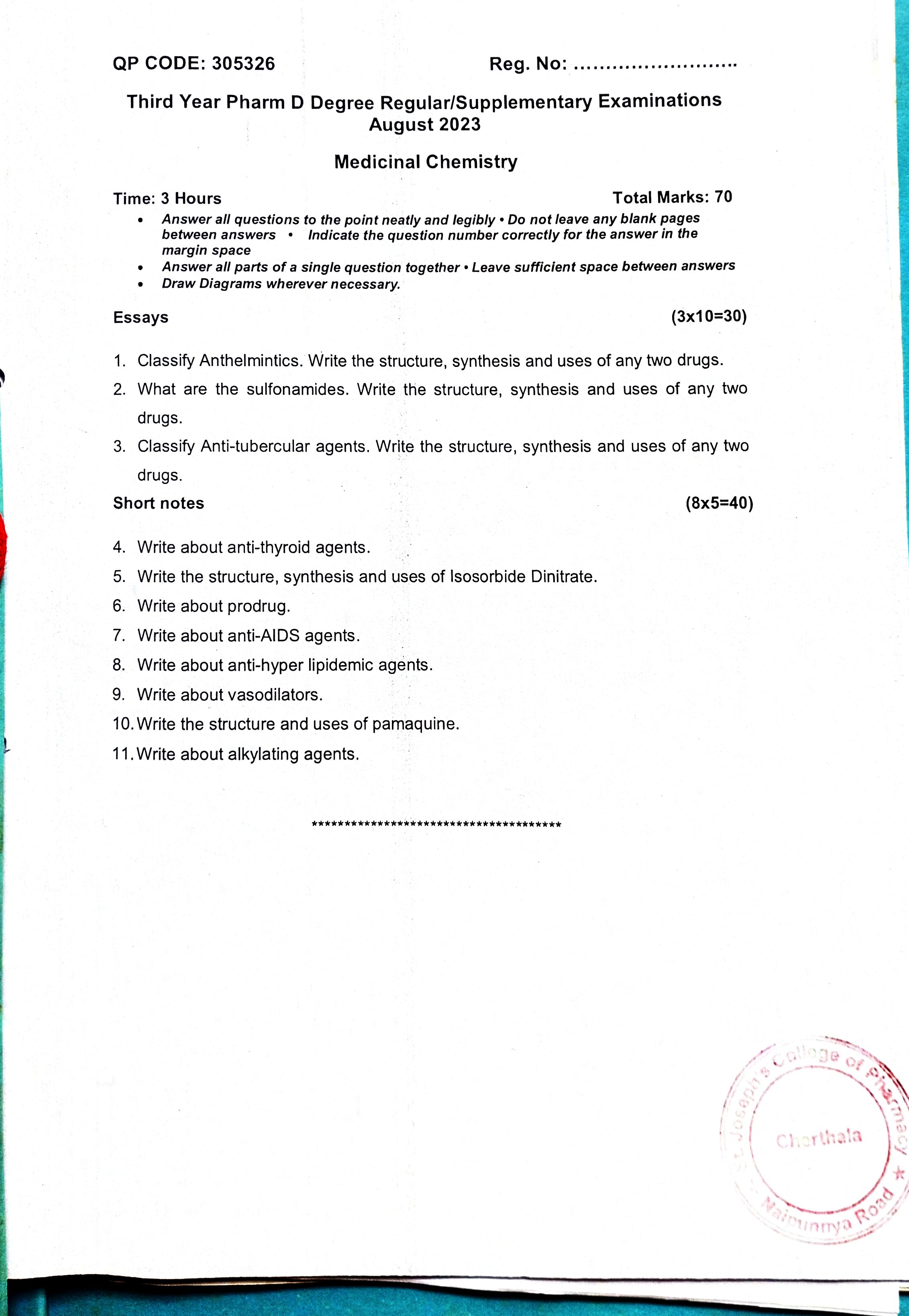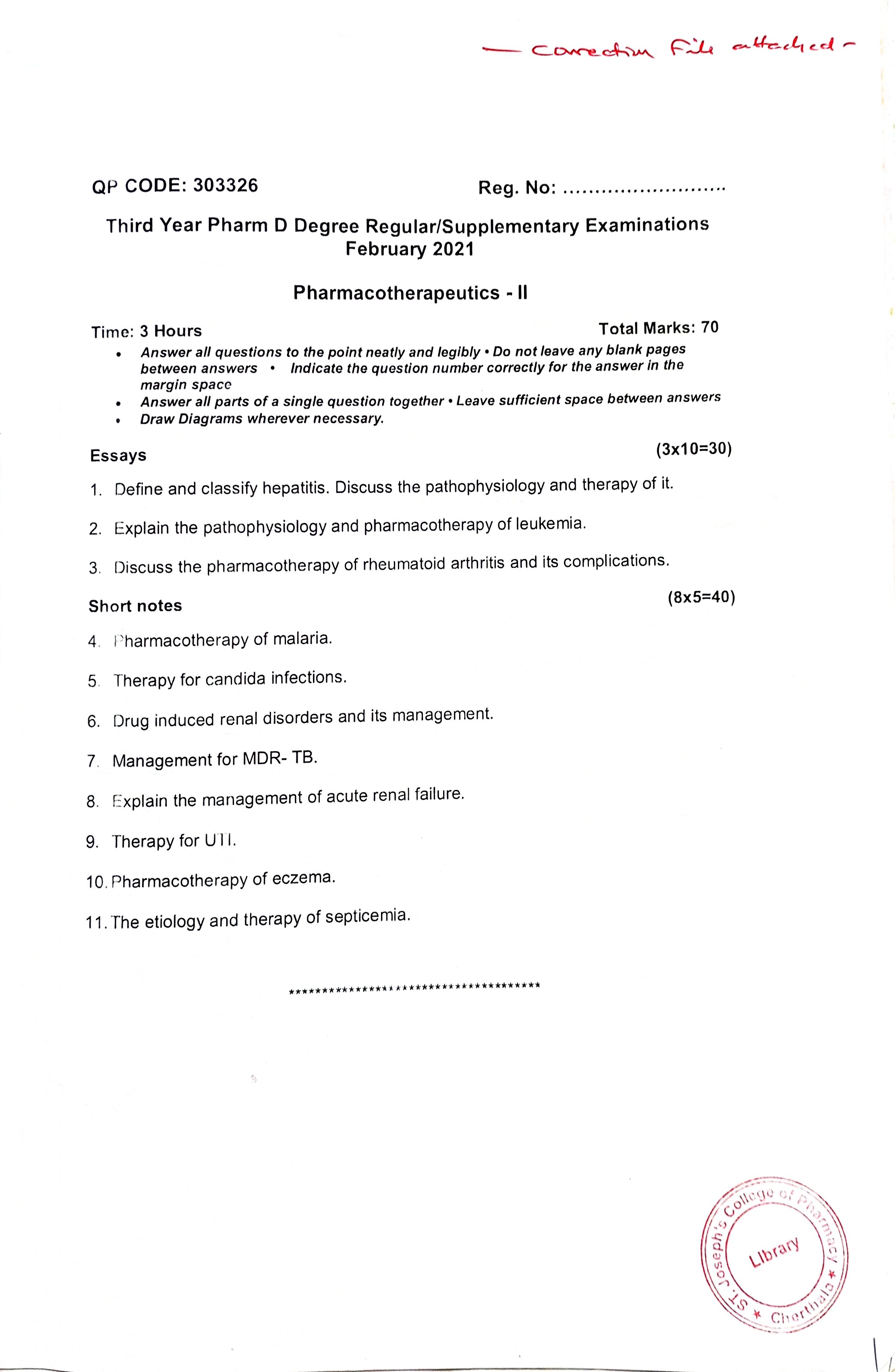 https://sjpc.digitalrepository.in/xmlui/handle/123456789/19| Title: | 3rd PharmD Question papers |
