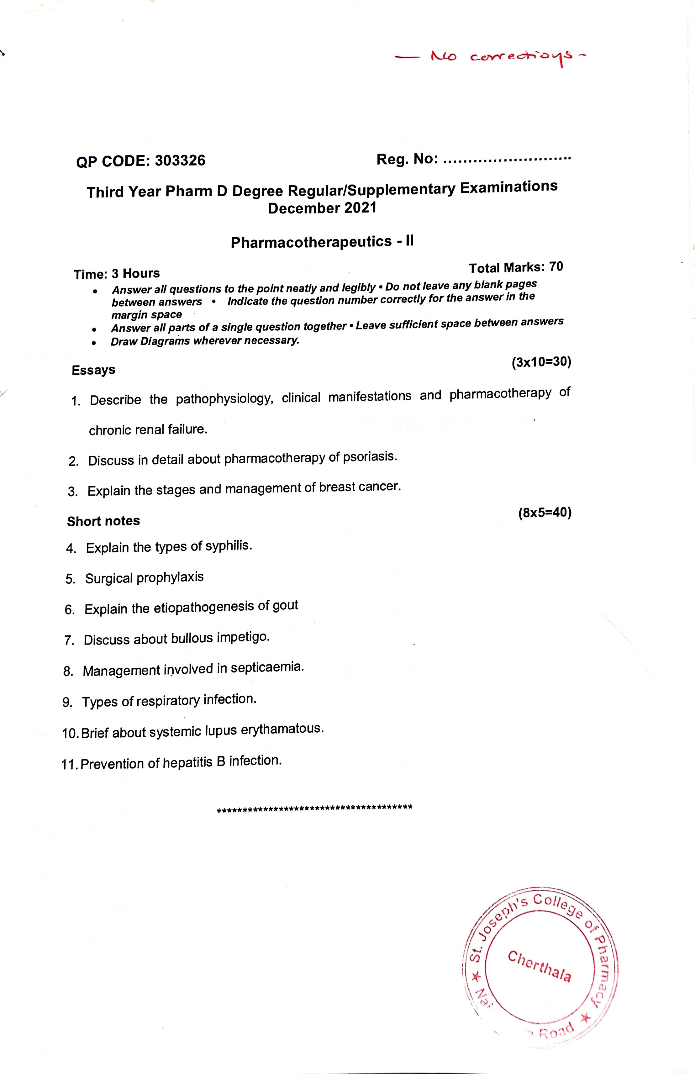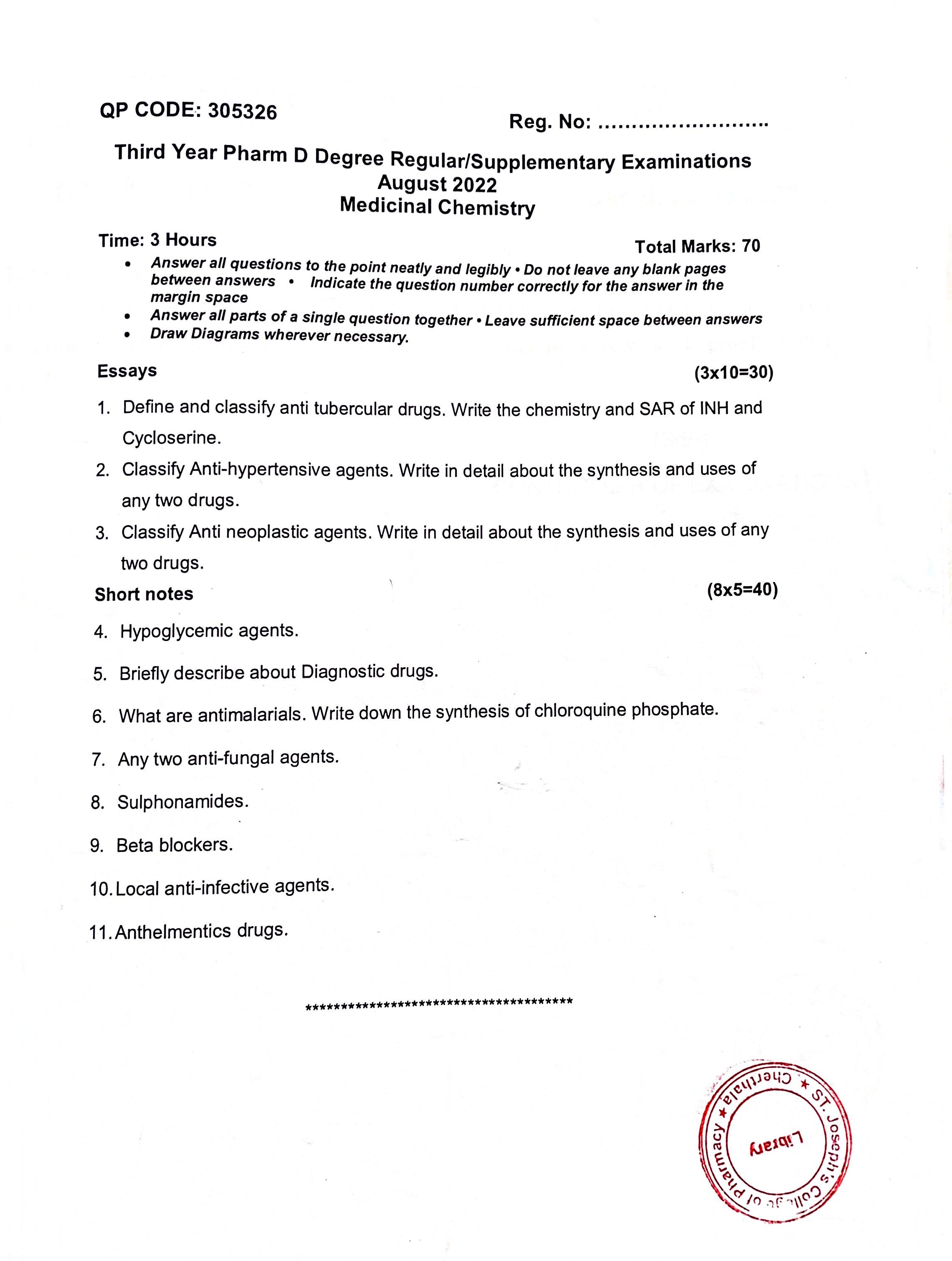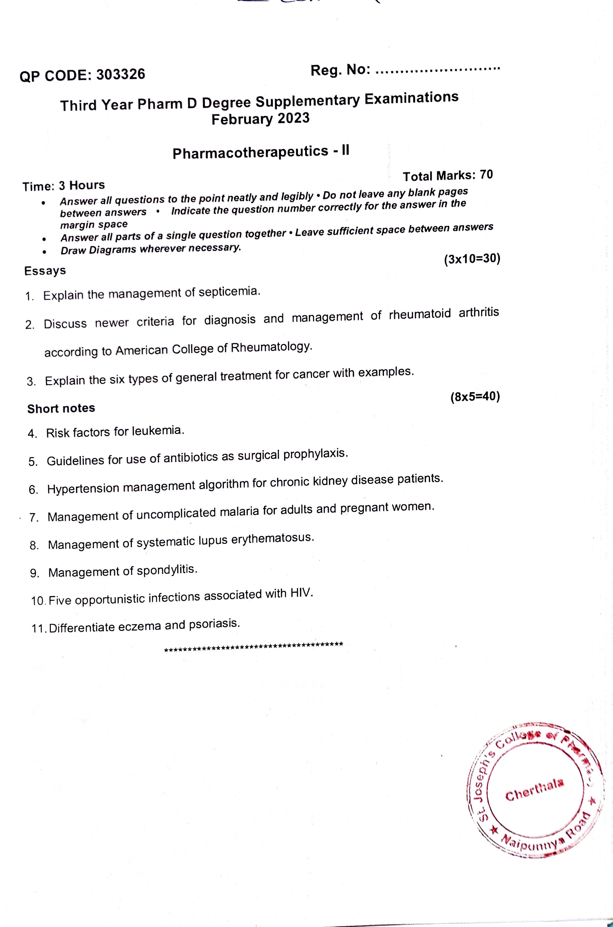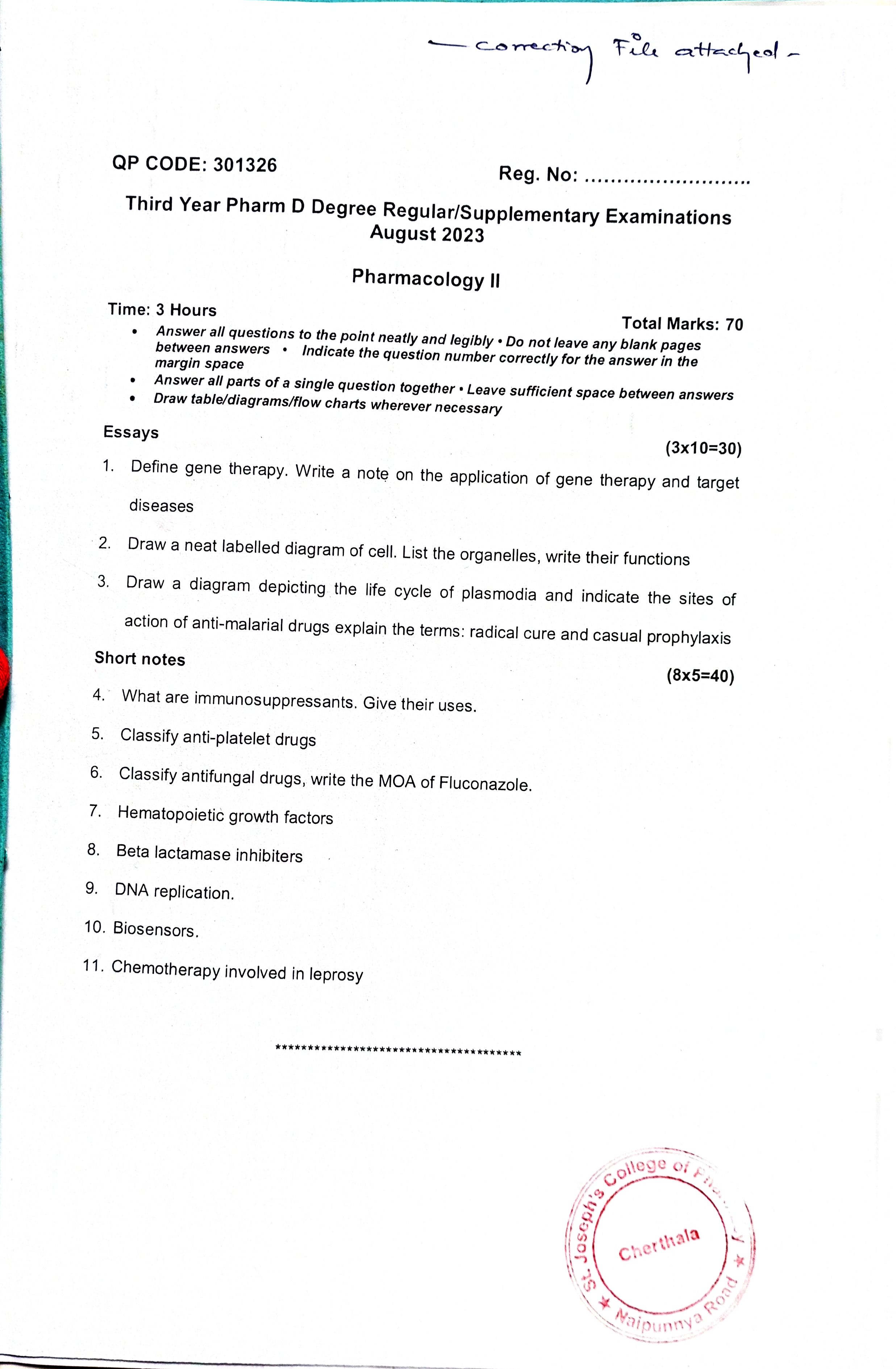https://sjpc.digitalrepository.in/xmlui/handle/123456789/19| Title: | 3rd PharmD Question papers |